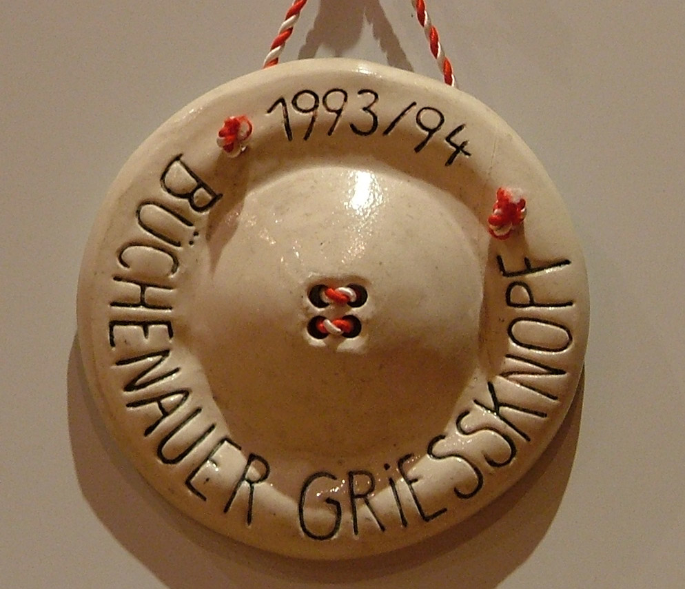 Das „Grießknöpf‘le“ wird an aktive Mitglieder der Büchenauer Karnevals Gesellschaft verliehen, die 11 Jahre aktives Mitglied, mindestens 33 Jahre alt sind und sich in dieser Zeit besondere Verdienste erworben haben.