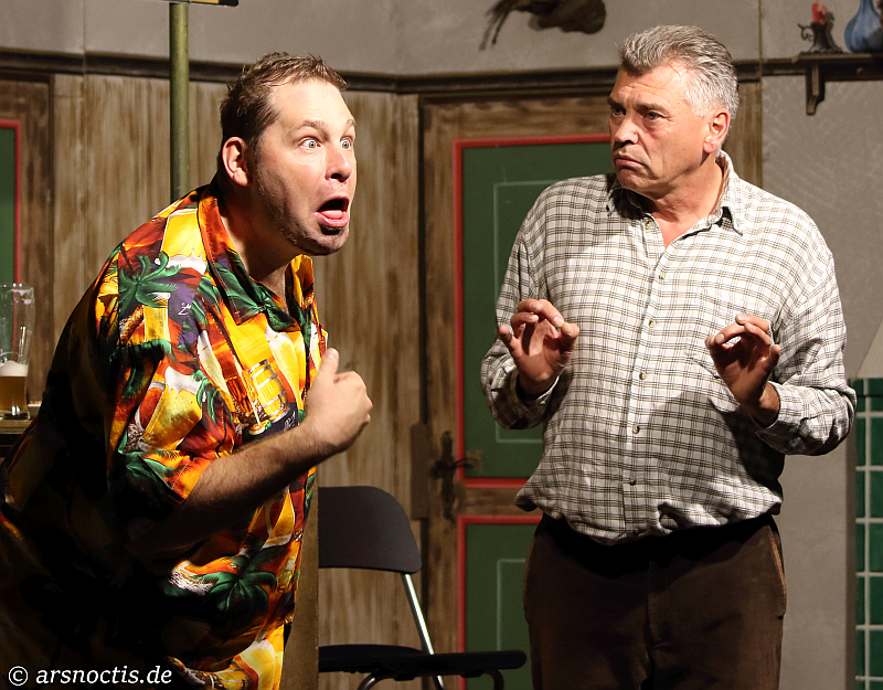 Mal als Psychiatrie-Patienten, mal als schwäbisches Ehepaar, das verzweifelt über das Fernsehprogramm streitet, oder als Vater, der seinemSohn die „Sache mit dem Storch“ erklärt.